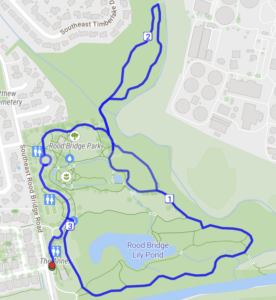 Race starts in front of the River House, and proceeds north onto the pedestrian path, following the park trail counter-clockwise around the park, first turning left to run the north loop then coming down to continue the full loop around Rood Bridge Lily Pond. The race will continue to do a second loop following the same trail. After the second loop, participants will turn left after the park entrance and head towards the finish line (same spot as the start).